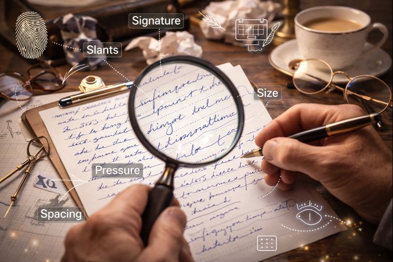 Graphology is 'brain writing' - the handwriting comes directly from the writer in a uniquely personal and individual way. A person's handwriting - the script - and its placing on the page express the unique impulses of the individual: logically, the brain sends signals along the muscles to the writing implement they control. It is irrespective of how the person has been taught to write: an expert graphologist understands the styles of the different countries and languages and makes allowances for 'taught' influences. Also largely irrelevant to the actual analysis is the content of the written text. By examining a handwriting sample, an expert graphologist is able to identify relevant features of the handwritten script, and the way the features interact. The features, and interaction between them, provide the information for the analysis. No single handwriting feature proves anything specific or absolute by itself; a single feature alone can only identify a trend. It is the combination of features, and the interaction between them that enable a full and clear interpretation.